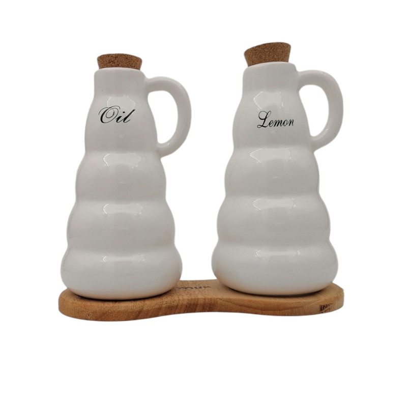 ظرف آبلیمو و روغن ام وی اچ گلس اند پلاستیکس مدل هانا مجموعه 2 عددی به همراه استند
