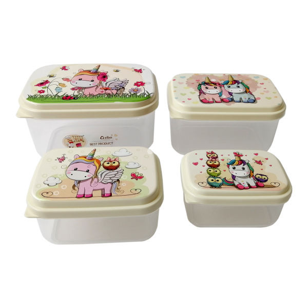 ظرف نگهدارنده زیبا طرح یونیکورن کد BH295 مجموعه 4 عددی
