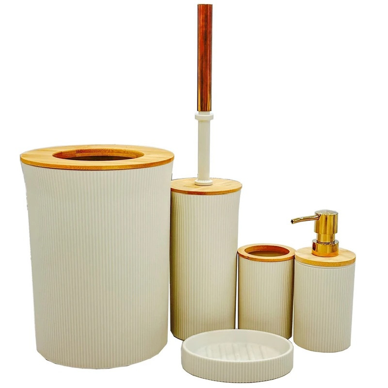 ست سرویس بهداشتی 5 تکه لیمون مدل درب بامبو کد HS2392