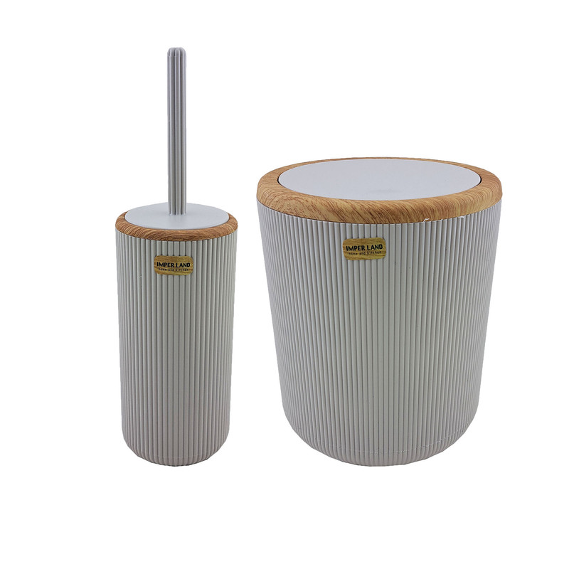 ست سطل زباله و فرچه امپرلند مدل کاریزما طرح چوب
