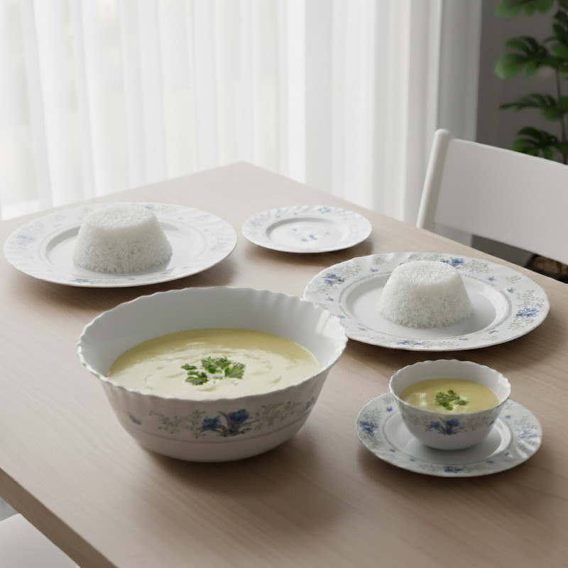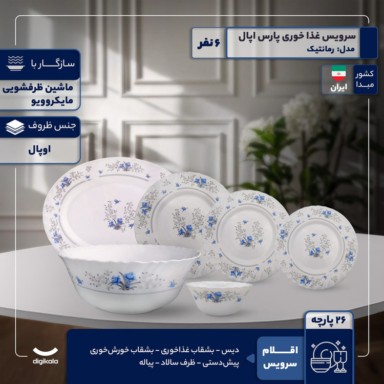 اقلام سرویس: ظرف سالاد , دیس , بشقاب غذاخوری , بشقاب خورشخوری , پیشدستی , پیاله