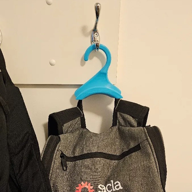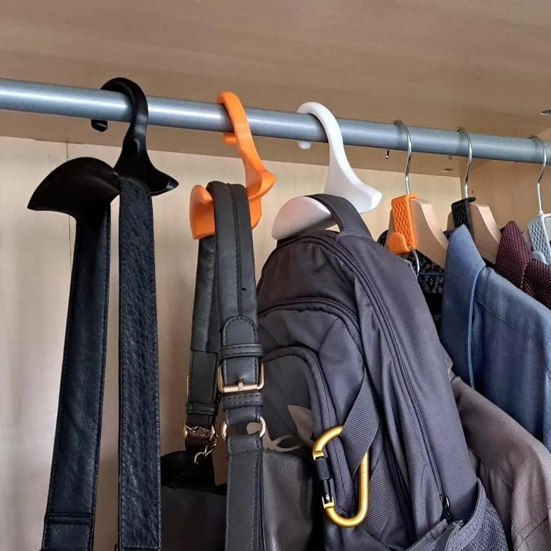 آویز کیف با طرح قلاب جالباسی محصولی با طراحی جدید است که آویختن کیف و کوله را در کنار لباس ها فراهم میسازد و همچنین تحمل آویختن وزن تا 10 کیلوگرم را دارد. محصول از پلااستیک PLA مقاومت ساخته شده که در حین سبک بودن مقاومت قابل توجهی دارد.