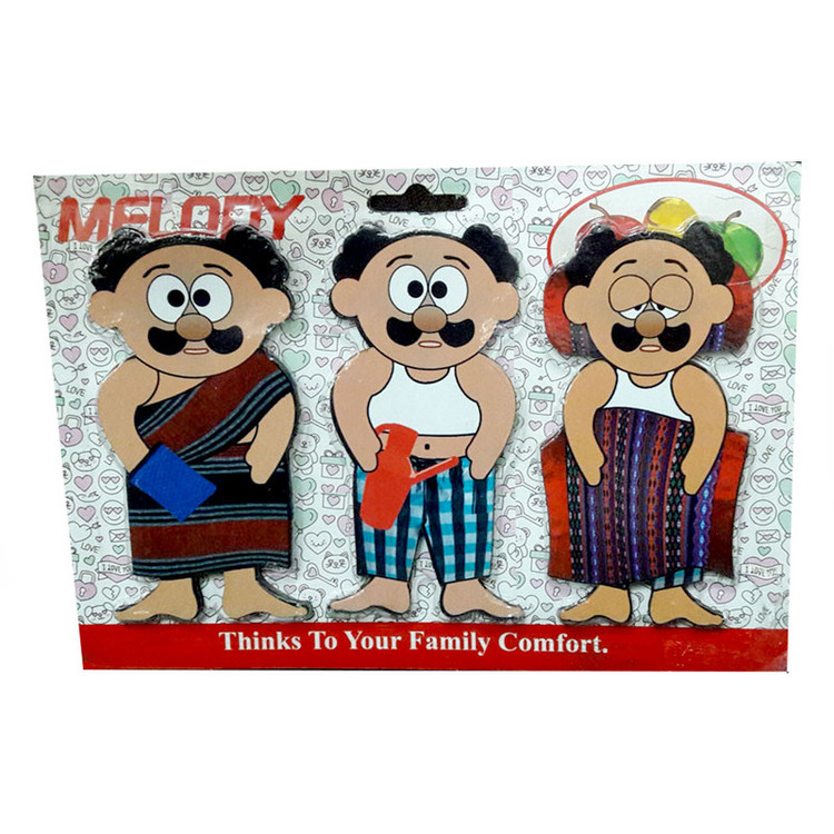 دارای یک تکه چسب دو طرفه در پشت هر عروسک برای نصب روی درب