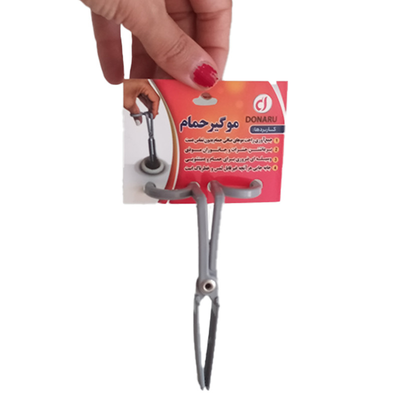 لمس کردن دریچه ی مو گیر حمام همیشه قسمت سخت تمیز کردن حمام بوده است که انبر مو گیر حمام دونارو به شما این امکان را می دهد که بدون لمس کردن آن موهای جمع شده در کفشوی حمام را جمع نمایید.