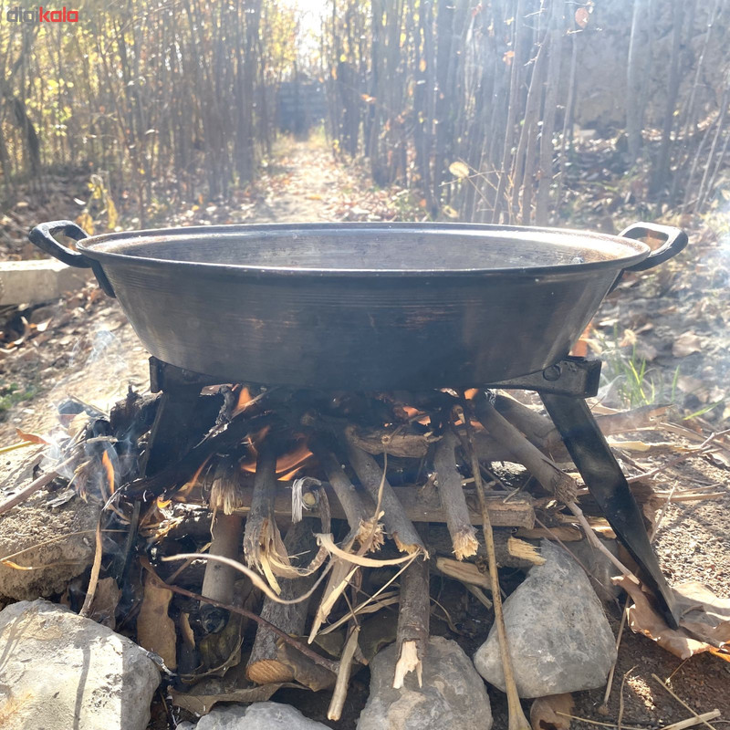 فلز استفاده شده در این سه پایه ضخامت و استحکام بالایی دارد. به همین دلیل نیروهای زیاد و وزنههای سنگین را به راحتی تحمل میکند و با استفاده مکرر روی آتش، هیچ آسیبی به آن وارد نمیشود.