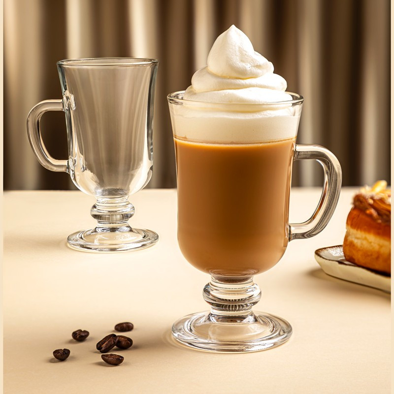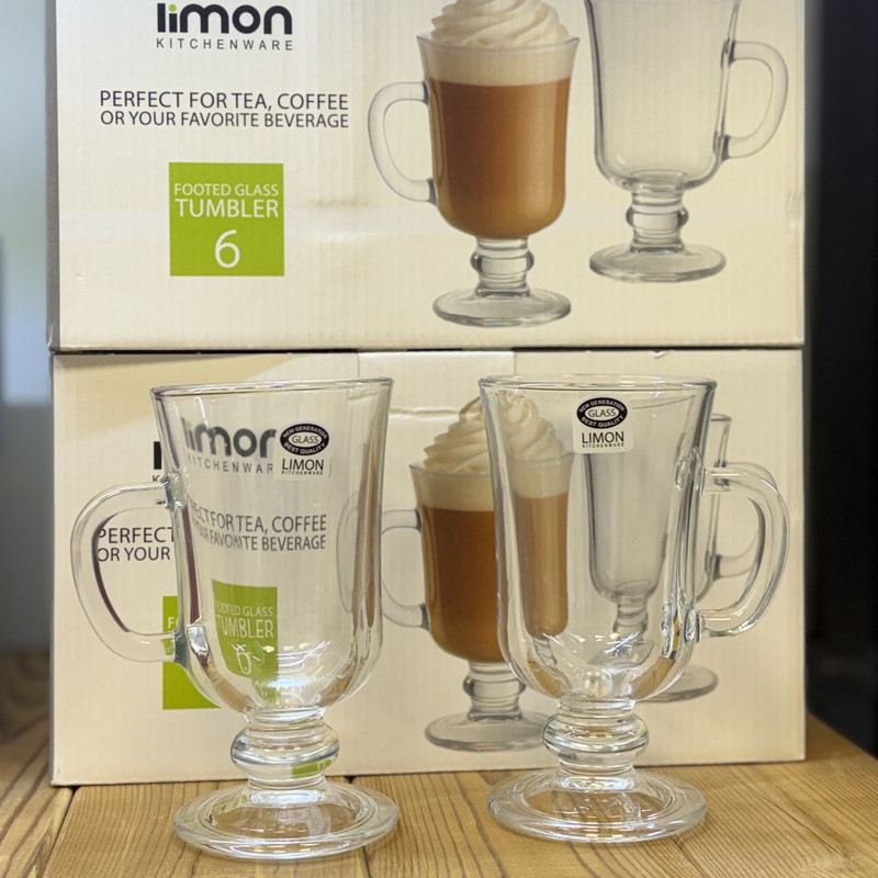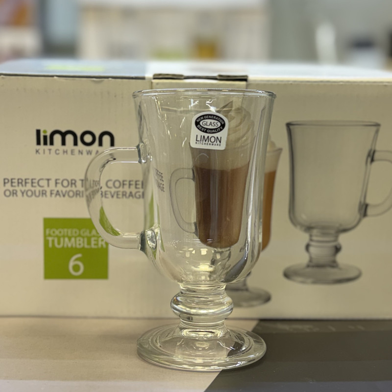 لیوان شیشهای پایهدار لیمون مدل قهوهخوری با طراحی زیبا، مقاوم و شفاف، گزینهای ایدهآل برای سرو نوشیدنیهای گرم مانند قهوه، هاتچاکلت و کاپوچینو است.