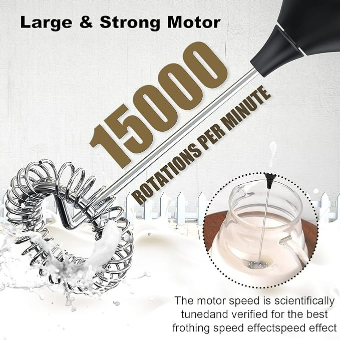 موتور پرقدرت: موتور تازه ارتقا یافته و قدرتمندتر میکسر نوشیدنی، سرعت بالا 13000 دور در دقیقه، صدای کم، قوی تر، همزدن پایدار بدون لرزش دارد. راندمان اختلاط فوق العاده بالا، پس از فوم دهی سریع از 15 تا 30 ثانیه، کف شیر غنی به دست آورید.