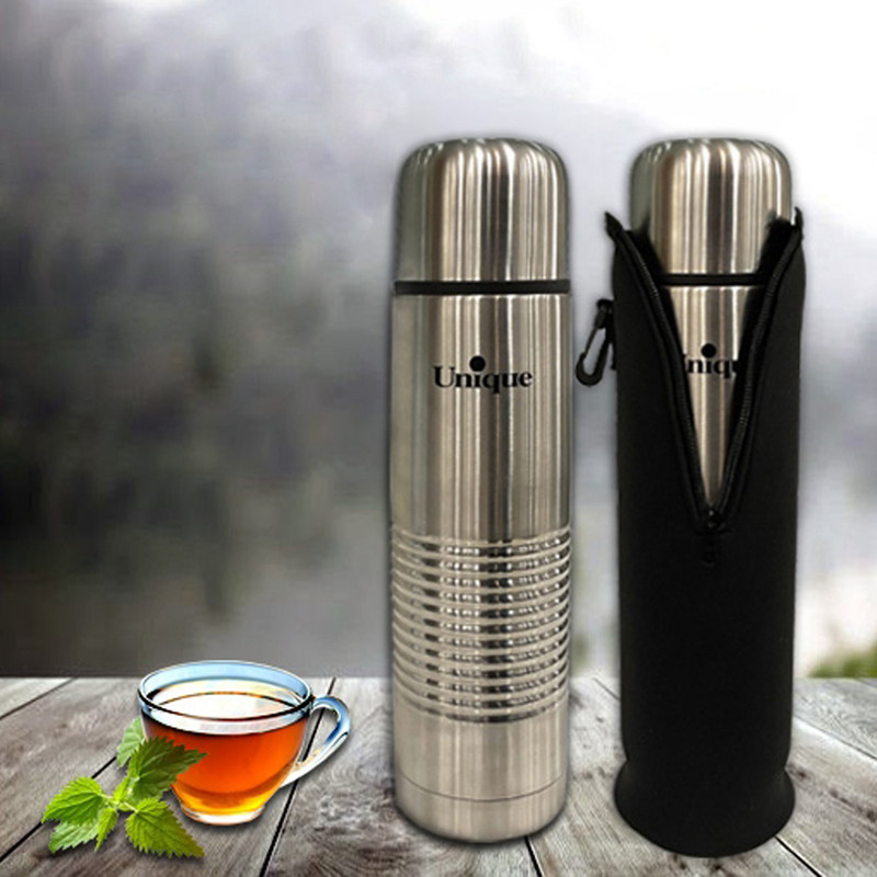 فلاسک برند یونیک فلاسک قلمی استیل برند یونیک در سایز 1000 سی سی از بدنه ای استیل و مقاوم ساخته شده است. این محصول همراه با یک کاور زیپ دار عرضه می شود. این کاور علاوه بر محافظت بیشتر از بدنه به حفظ دمای مایع داخل فلاسک کمک می کند. مقاومت بدنه، نوع طراحی و قابلیت عایق بالا، این محصول رابرای استفاده روزمره و استفاده در سفر های کوتاه و کمپینگ و کوهنوردی مناسب کرده است . همچنین فلاسک های یونیک قابلیت حفظ دمای مایع گرم را تا 12 ساعت داغ و مایع سرد تا 24 ساعت سرد دارد. درب محصول به صورت پیچی بسته میشود و مانع از نشت آب است. همچنین برای راحتی استفاده یک خروجی ضامن دار روی درب امکان خروج مایع را فراهم می کند. درپوش استیل این محصول قابلیت استفاده به عنوان لیوان را دارد.