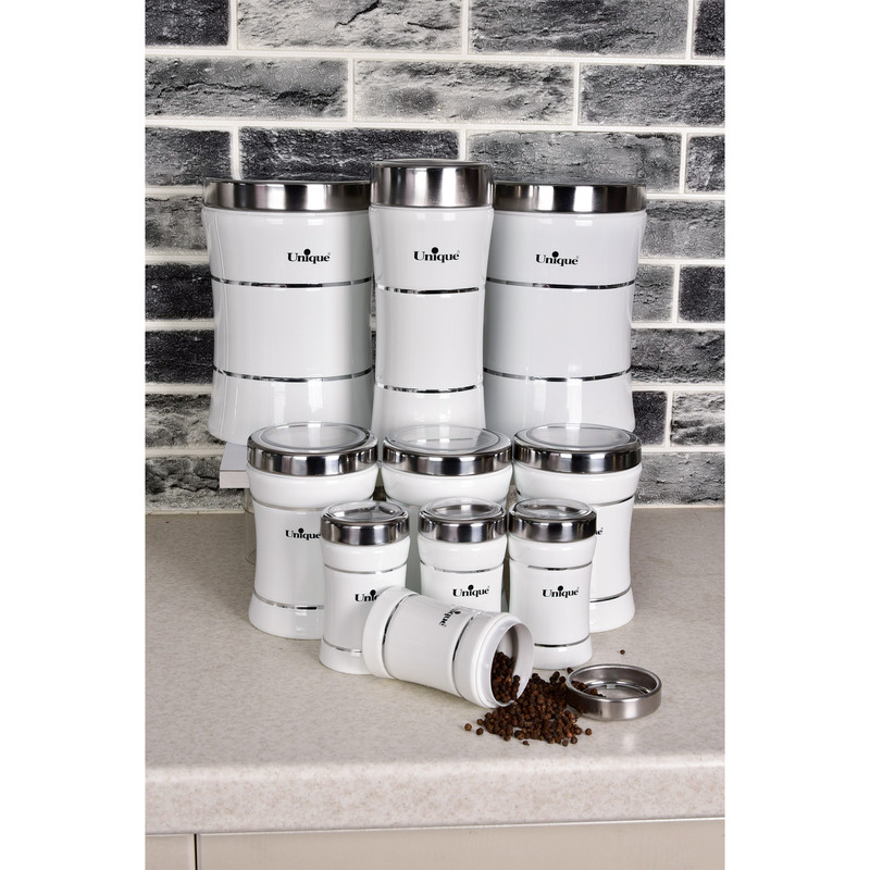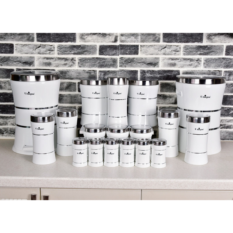 سرویس آشپزخانه یکی از ملزومات اساسی آشپزخانه است، که در هر سرویس جهیزیه لازم است، سرویس های آشپزخانه در تعداد های مختلف برای نیاز های مختلف طراحی و تولید میشوند که شامل بانکه هایی در ابعاد مختلف برای نگهداری ادویه جات و جبوبات و خواربار میباشد. سرویس های آشپزخانه برند یونیک یکی از باکیفیت ترین محصولات در بازار میباشد این ست شامل :3 عدد پاسماوری،6 عدد جای ادویه،5عدد ظرف حبوبات، 1 عدد سطل زباله، 1 عدد سطل برنج، 1 عدد جای قند، 1 عدد جای شکر.