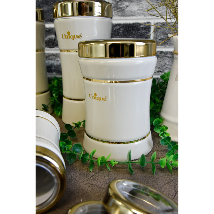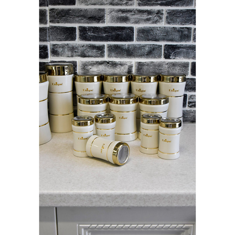 “سرویس آشپزخانه 18 پارچه شامل قوطی های بسیار با کیفیتی است که در اندازه های مختلف تولید شده اند. میتوانید از این قوطی ها برای نگهداری مواد غذایی مختلف استفاده کنید. این ست شامل :سطل برنج 1عدد سطل زباله 1عدد سطل شکر 1عدد سطل قند 1عدد بانکه اسپاگتی 1عدد بانک متوسط 3عدد بانکه بزرگ 4عدد جای ادویه 6عدد