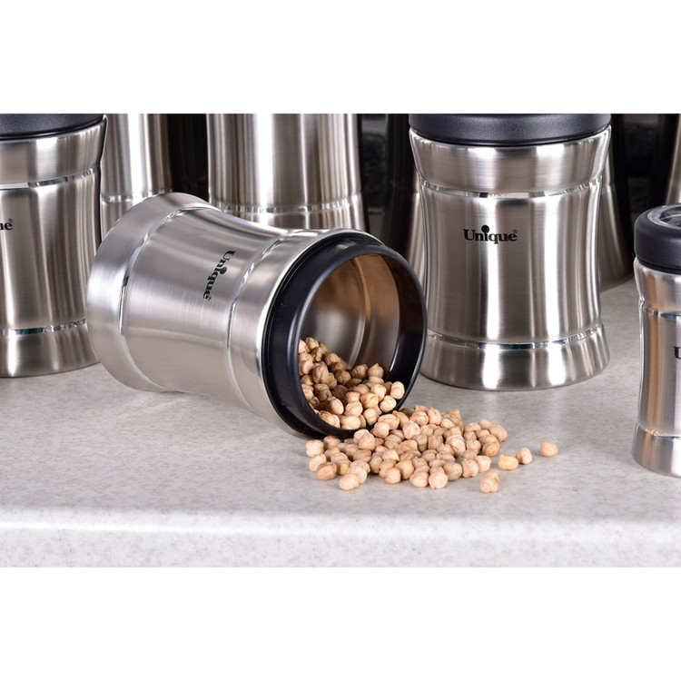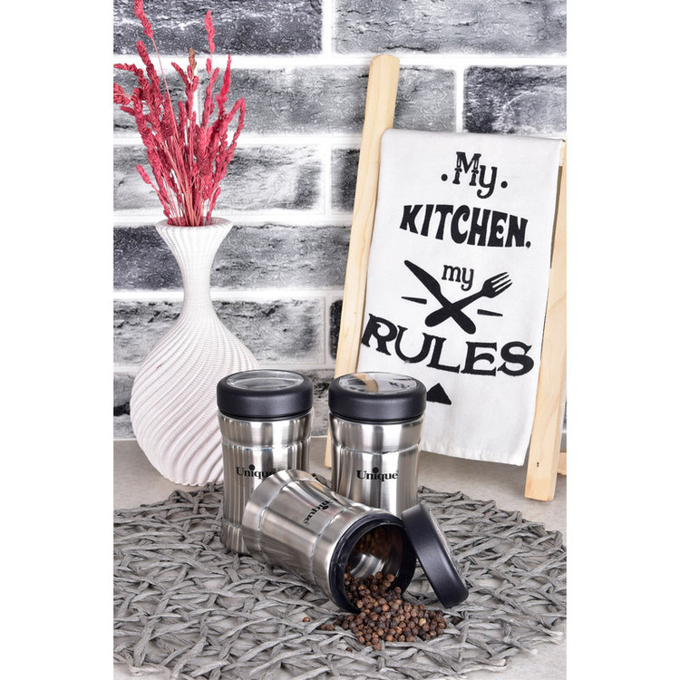 ست ظروف آشپزخانه یونیک علاوه بر زیبایی، دارای کارایی متناسب با نیازهای یک آشپزخانه کامل است. طراحی این محصولات در جهت تسهیل کار در آشپزخانه می باشد. این ظروف برای نگه داری حبوبات و مواد غذایی مناسب می باشند.این ست 18 پارچه برای نگهداری مواد مختلف می باشد. یک سطل پدال دار، یک سطل برنج، دو ظرف قند و شکر، چهار ظرف حبوبات، سه ظرف پا سماوری ، یک ظرف ماکارانی و شش ظرف ادویه که برای تکمیل کردن آشپزخانه ی خود بسیار با دوام و زیباست