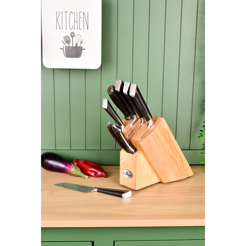 سرویس چاقو یونیک یکی از بهترین چاقو های موجود در بازار ایران میباشد. جنس این چاقوها از استیل , بصورت تیغه و دستگیره یک تیکه میباشد.تیغه و دستگیره یک تیکه باعث تسلط راحتتر چاقو در دست می شود و از جداشدن تیغه از دستگیره جلوگیری میکند. شامل : 4 عدد چاقو در اندازه های مختلف ، 1 عدد ساطور، 1 عدد چاقو تیزکن ، 1 عدد استند و 1 عدد قیچی می باشد.