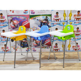 صندلی غذا خوری صرف غذا برای کودکان کنار میزناهار بسیار راحت کرده. این صندلی بر روی چهار پایه کرم قرار گرفته است زاویه قرار گیری پایه های صندلی به گونه ای طراحی شده است که احتمال واژگونی آن را به حداقل می رساند از دیگر ویژگی پایه های این صندلی توانایی قرار گیری آن بر روی فرش،موکت،پارکت ،موزاییک و انواع کفپوش ها بدون سر خوردن است .نشیمنگاه این صندلی دارای طراحی منحصر به فردی است در این طرح فضای کافی برای قرار گیری پای کودک در نظر گرفته شده است.